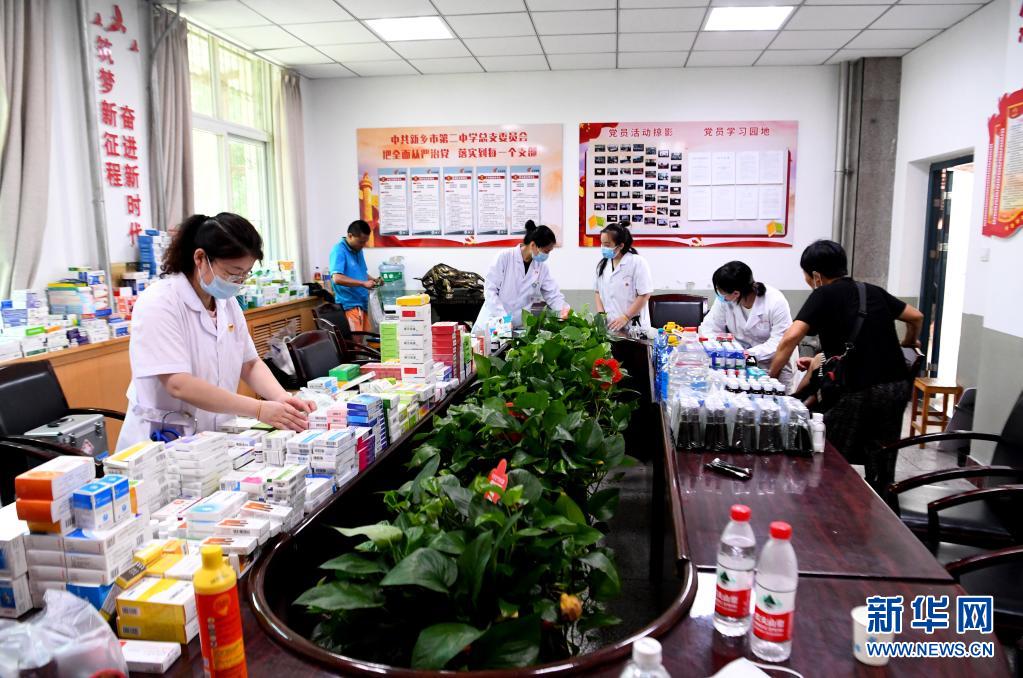 受連續(xù)強降雨天氣影響,河南省新鄉(xiāng)市多個村鎮(zhèn)內(nèi)澇嚴(yán)重,新鄉(xiāng)市周邊三個村莊538名受困村民被轉(zhuǎn)移安置在新鄉(xiāng)市第二中學(xué)。記者走訪看到,物資運輸車輛不斷進(jìn)出,志愿者有序整理捐贈衣物、日用品等,安置點宿舍內(nèi)配備空調(diào),黨員活動室變成臨時醫(yī)療救助點并配備專業(yè)醫(yī)護人員。轉(zhuǎn)移群眾食宿有保障,安置狀況良好。