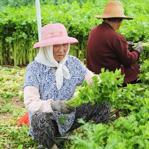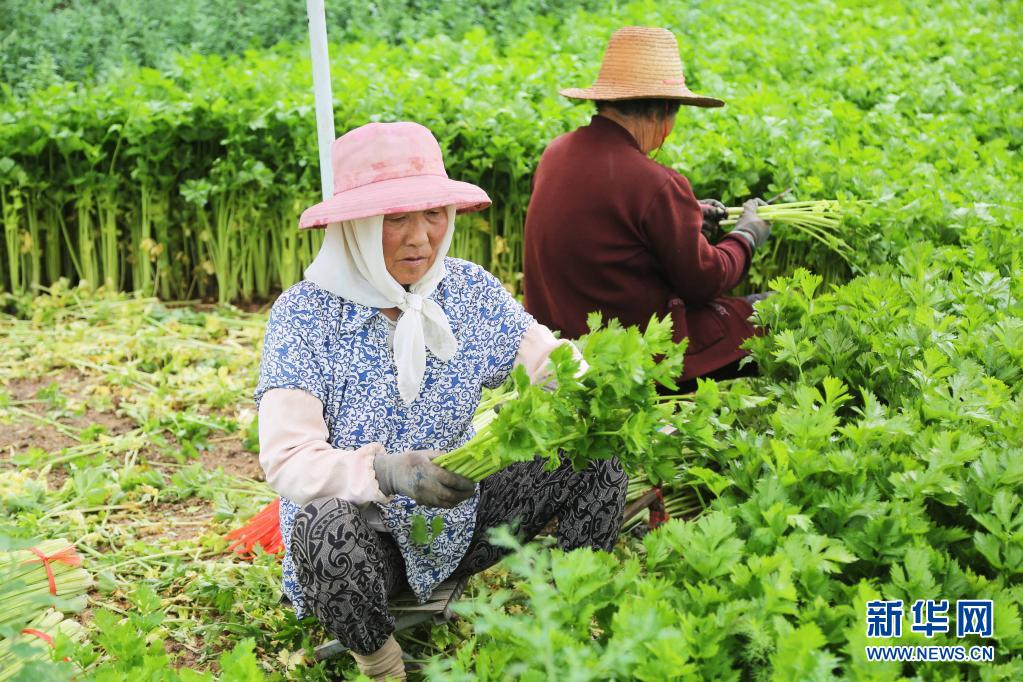 7月27日,甘肅省定西市安定區(qū)鳳翔鎮(zhèn)中川村村民在采收芹菜。