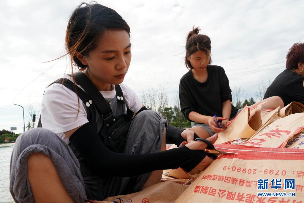 當(dāng)日,在河南省鶴壁市浚縣傅莊堤上,不少群眾自發(fā)前來和救援人員一起裝沙袋、運(yùn)沙袋,共筑堤壩。受持續(xù)強(qiáng)降雨影響,??h防汛形勢(shì)嚴(yán)峻,傅莊堤主要為??h縣城及26個(gè)村莊提供保護(hù)。新華社記者 李安 攝