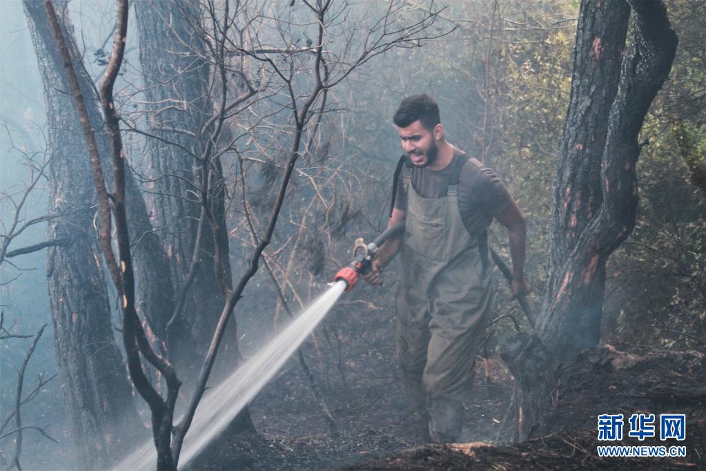 7月29日,黎巴嫩民防人員在阿卡爾省火災(zāi)現(xiàn)場(chǎng)滅火。