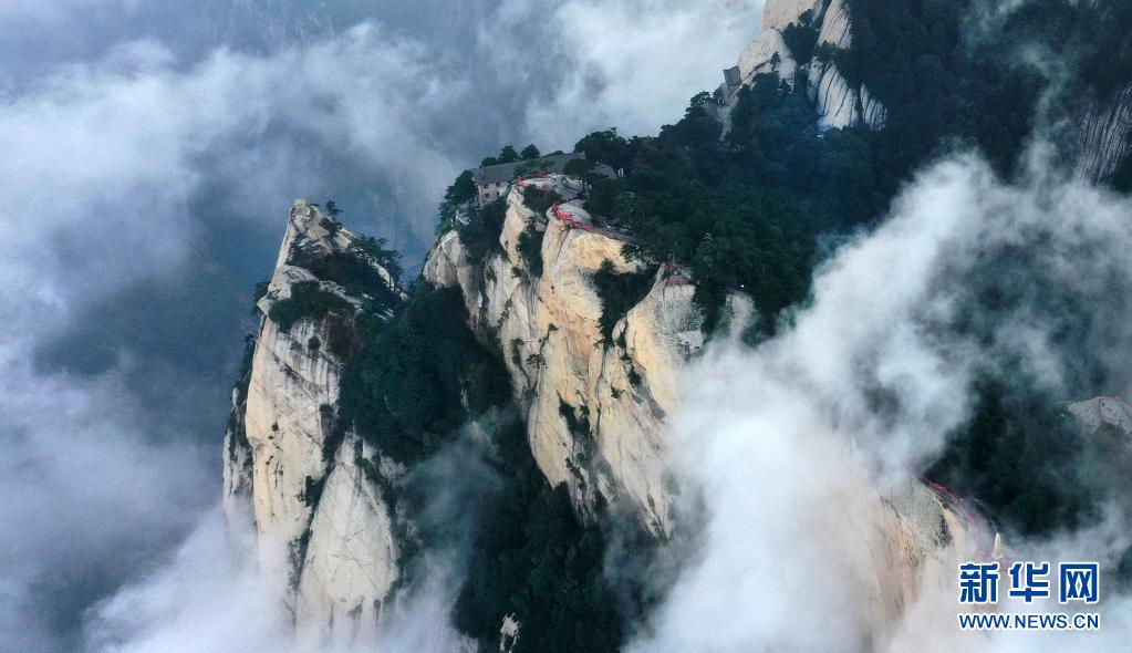 8月14日,奇景幻影的西岳華山東峰一景(無人機(jī)照片)。