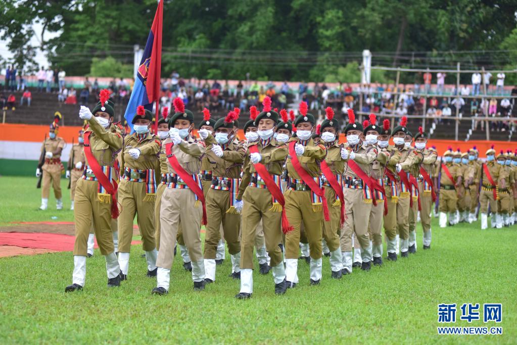 8月15日,警察在印度阿薩姆邦參加獨(dú)立日慶?;顒?dòng)。