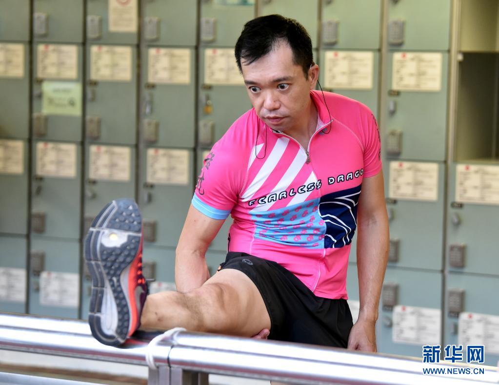 猛龍長(zhǎng)跑隊(duì)視聽(tīng)障跑手蔡浩良在訓(xùn)練前熱身(7月29日攝)。新華社記者 盧炳輝 攝