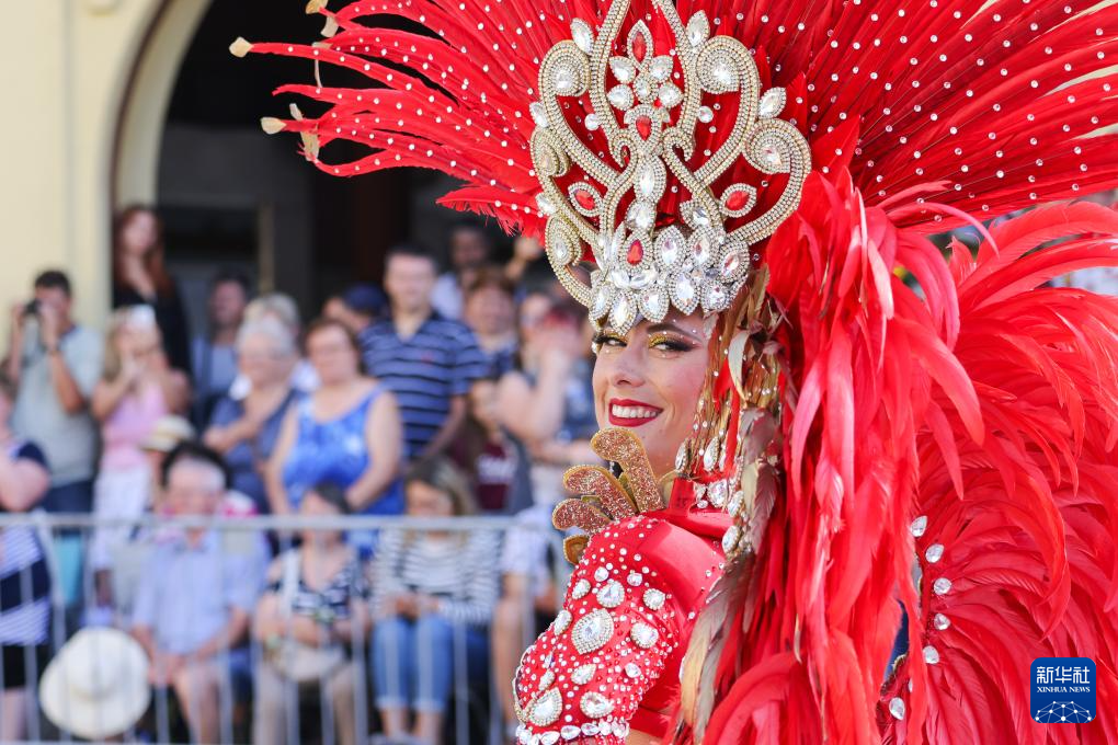 8月20日,在匈牙利德布勒森,演员在花车巡游活动中表演。