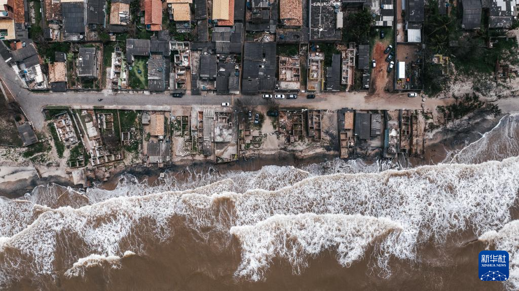 这是10月4日在巴西里约热内卢州阿塔福纳拍摄的受海岸侵蚀影响的民房(无人机照片)。