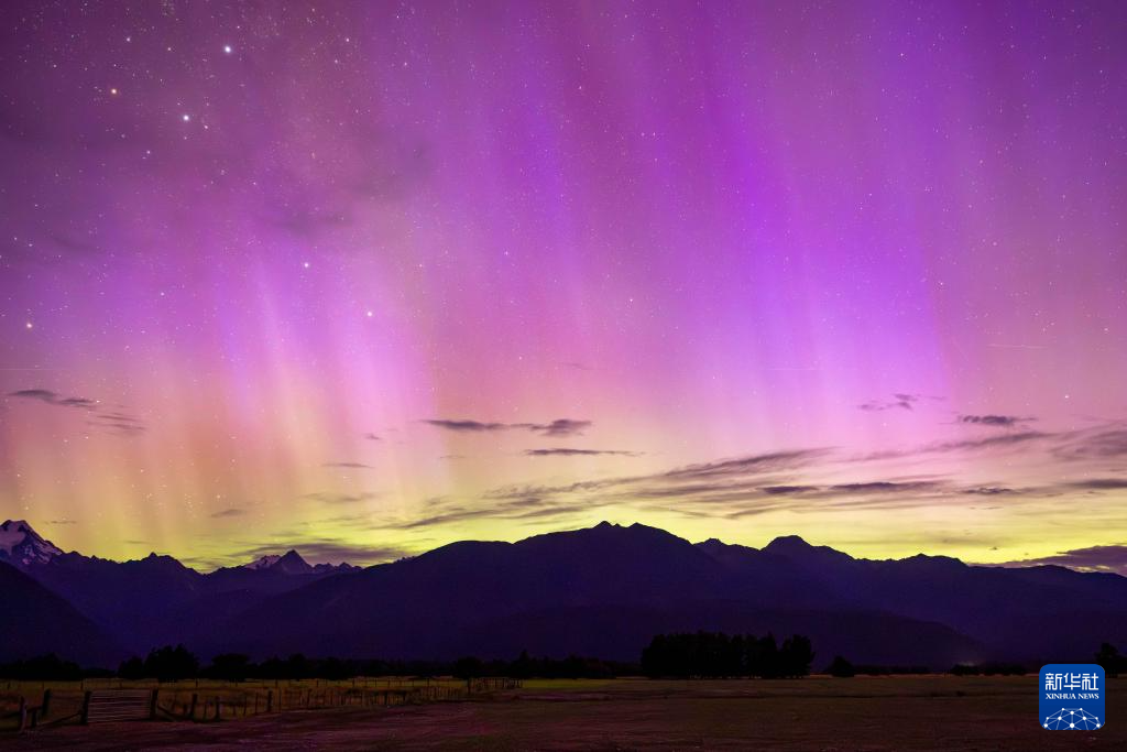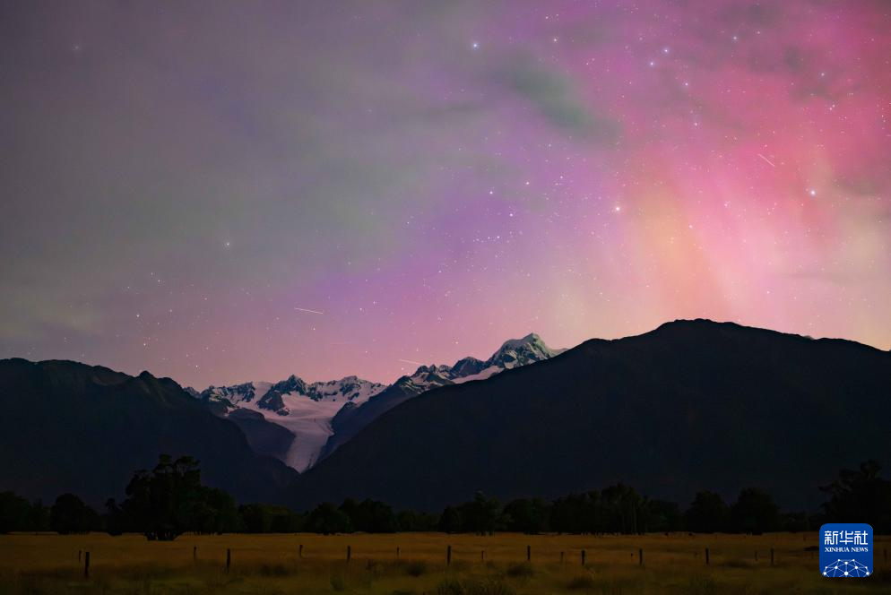 这是1月20日在新西兰南岛福克斯冰川附近拍摄的极光。