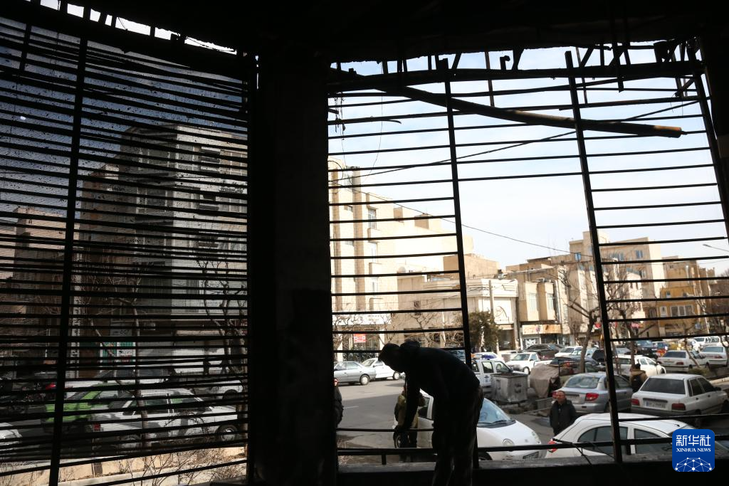 这是1月21日在伊朗首都德黑兰拍摄的在近期骚乱中受损的一处税务局建筑。