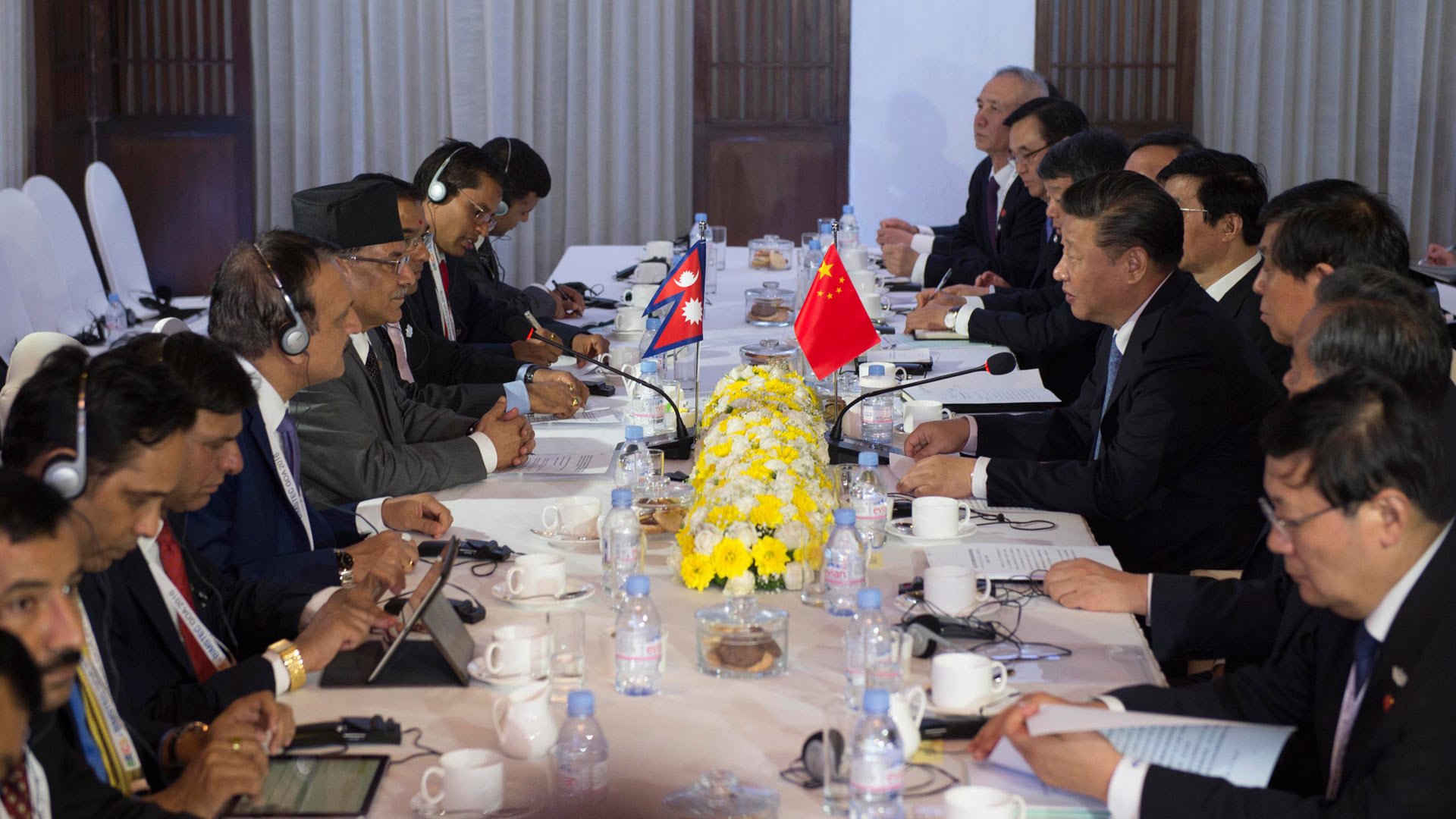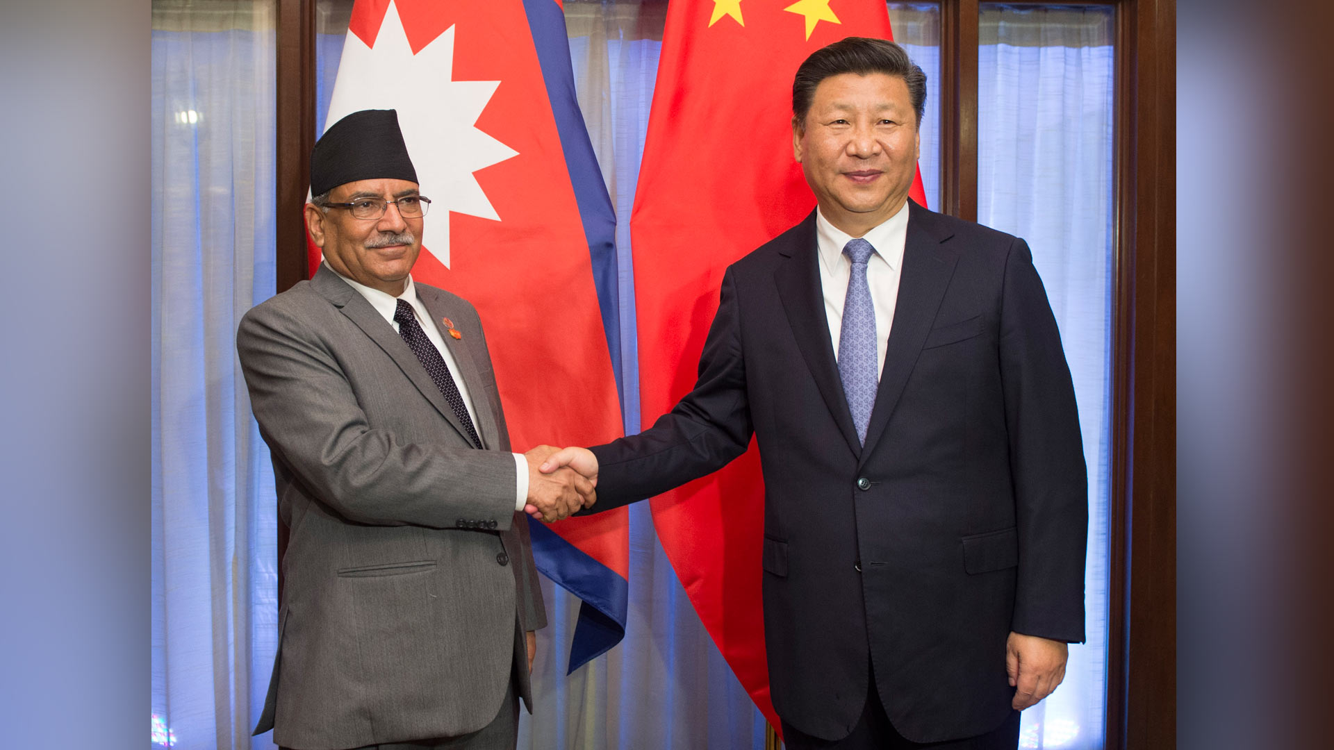 10月15日,國家主席習(xí)近平在印度果阿會(huì)見尼泊爾總理普拉昌達(dá)。新華社記者 謝環(huán)馳 攝