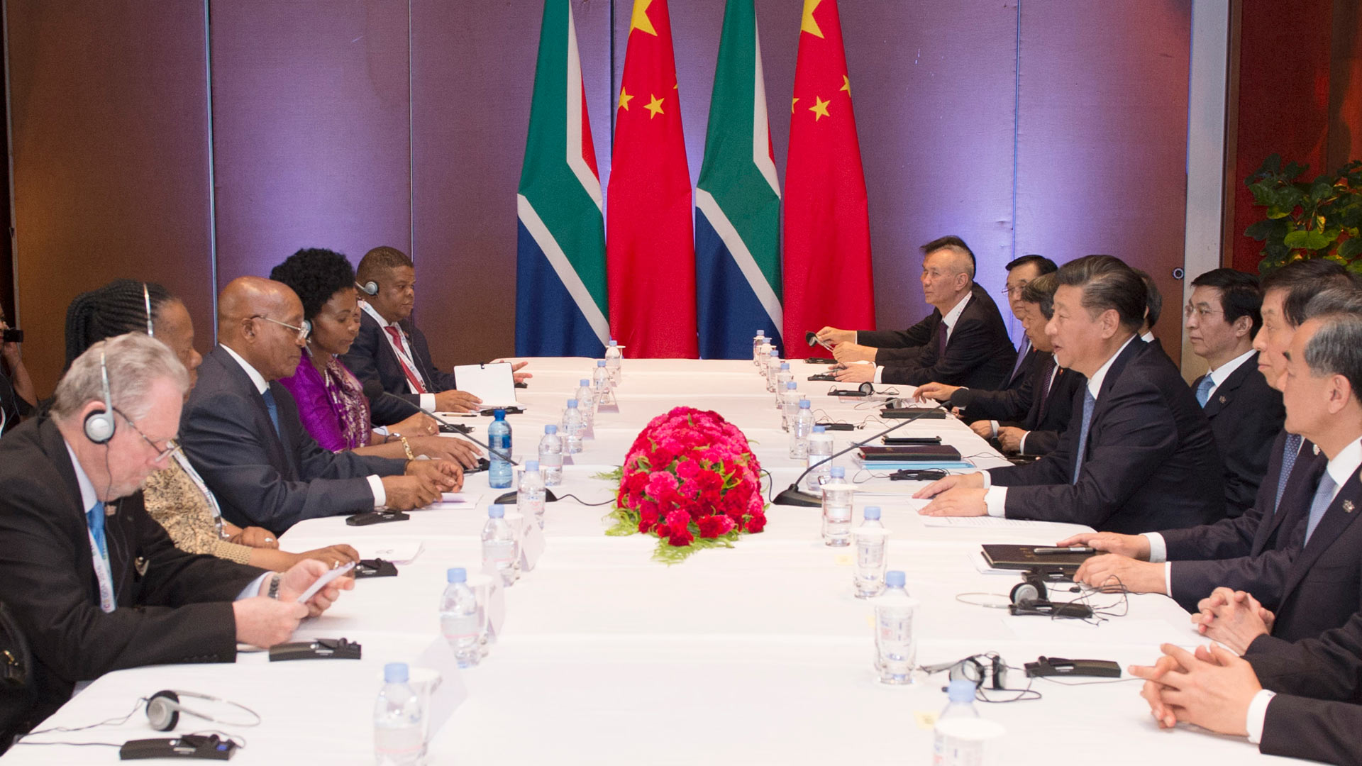 10月15日,國家主席習(xí)近平在印度果阿會(huì)見南非總統(tǒng)祖馬。新華社記者 王曄 攝