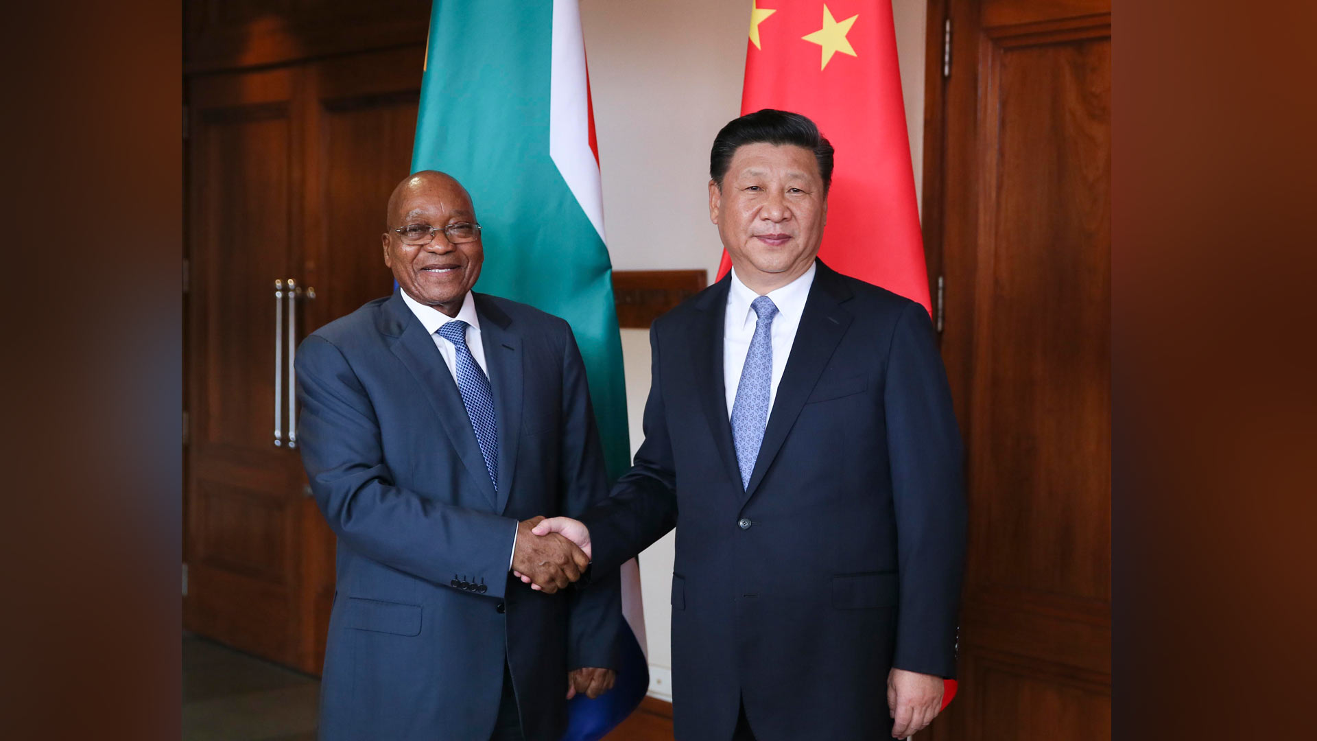 10月15日,國家主席習(xí)近平在印度果阿會(huì)見南非總統(tǒng)祖馬。新華社記者 蘭紅光 攝