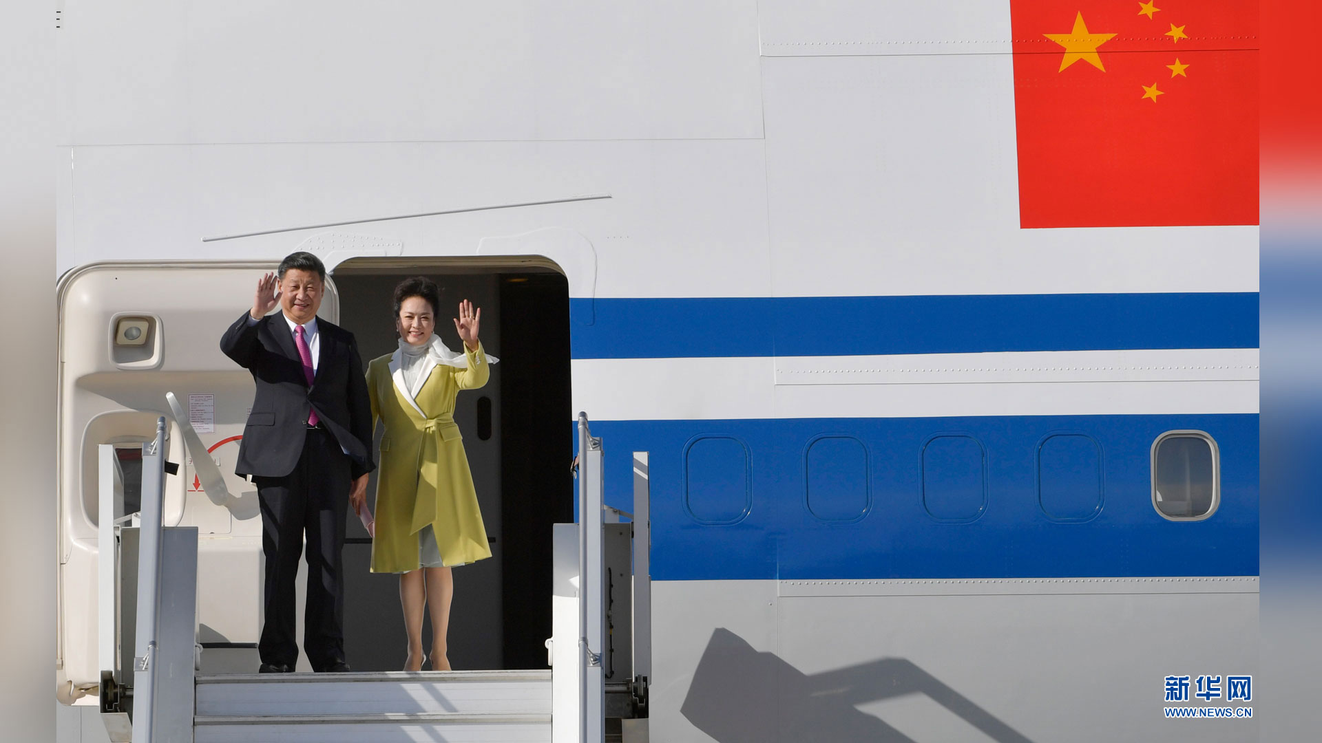 當地時間11月17日,國家主席習近平乘專機抵達基多,開始對厄瓜多爾共和國進行國事訪問。這是習近平與夫人彭麗媛向歡迎人群揮手致意。新華社記者 王曄 攝2016-11-18