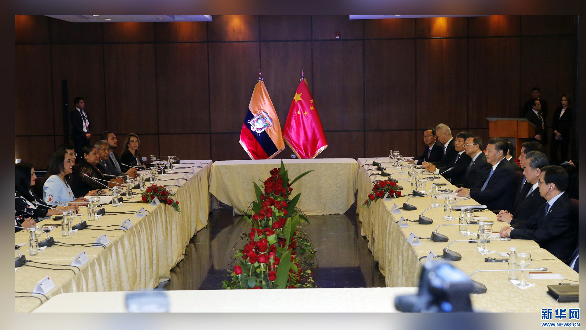 當地時間11月17日,國家主席習近平在基多同厄瓜多爾總統(tǒng)科雷亞舉行會談。 新華社記者 鞠鵬 攝2016-11-18