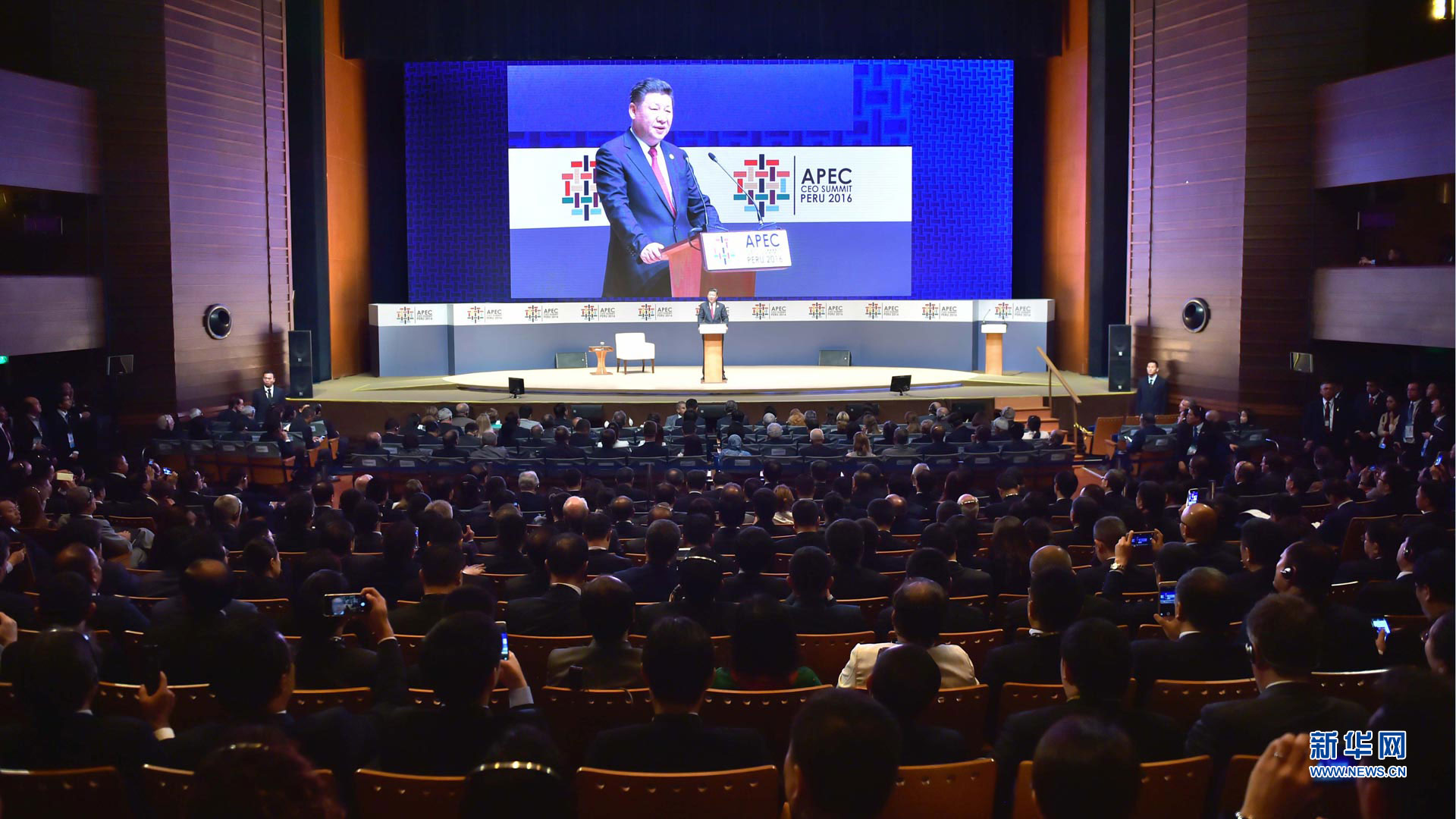 11月19日,2016年亞太經合組織工商領導人峰會在秘魯利馬舉行。國家主席習近平應邀出席并發(fā)表題為《深化伙伴關系 增強發(fā)展動力》的主旨演講。 新華社記者 蘭紅光 攝2016-11-20