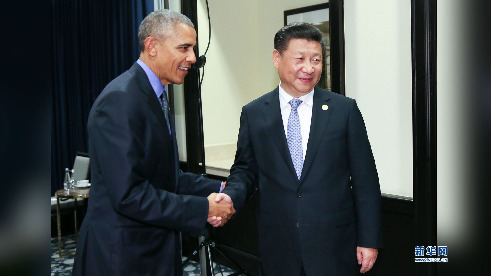 11月19日,國家主席習近平在利馬會見美國總統(tǒng)奧巴馬。 新華社記者蘭紅光 攝2016-11-20