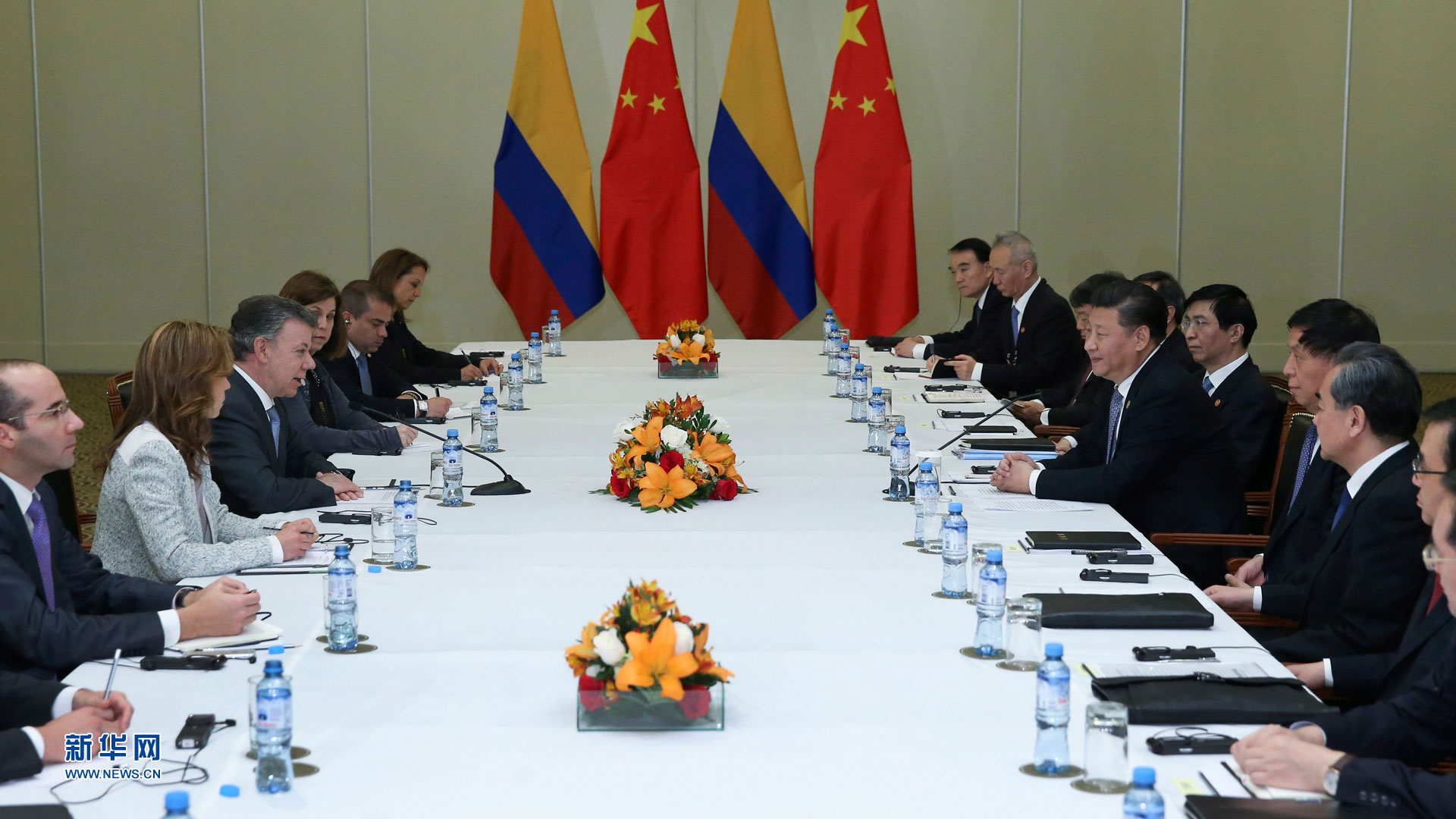 11月19日,國家主席習近平在利馬會見哥倫比亞總統(tǒng)桑托斯。新華社記者 李濤 攝2016-11-20