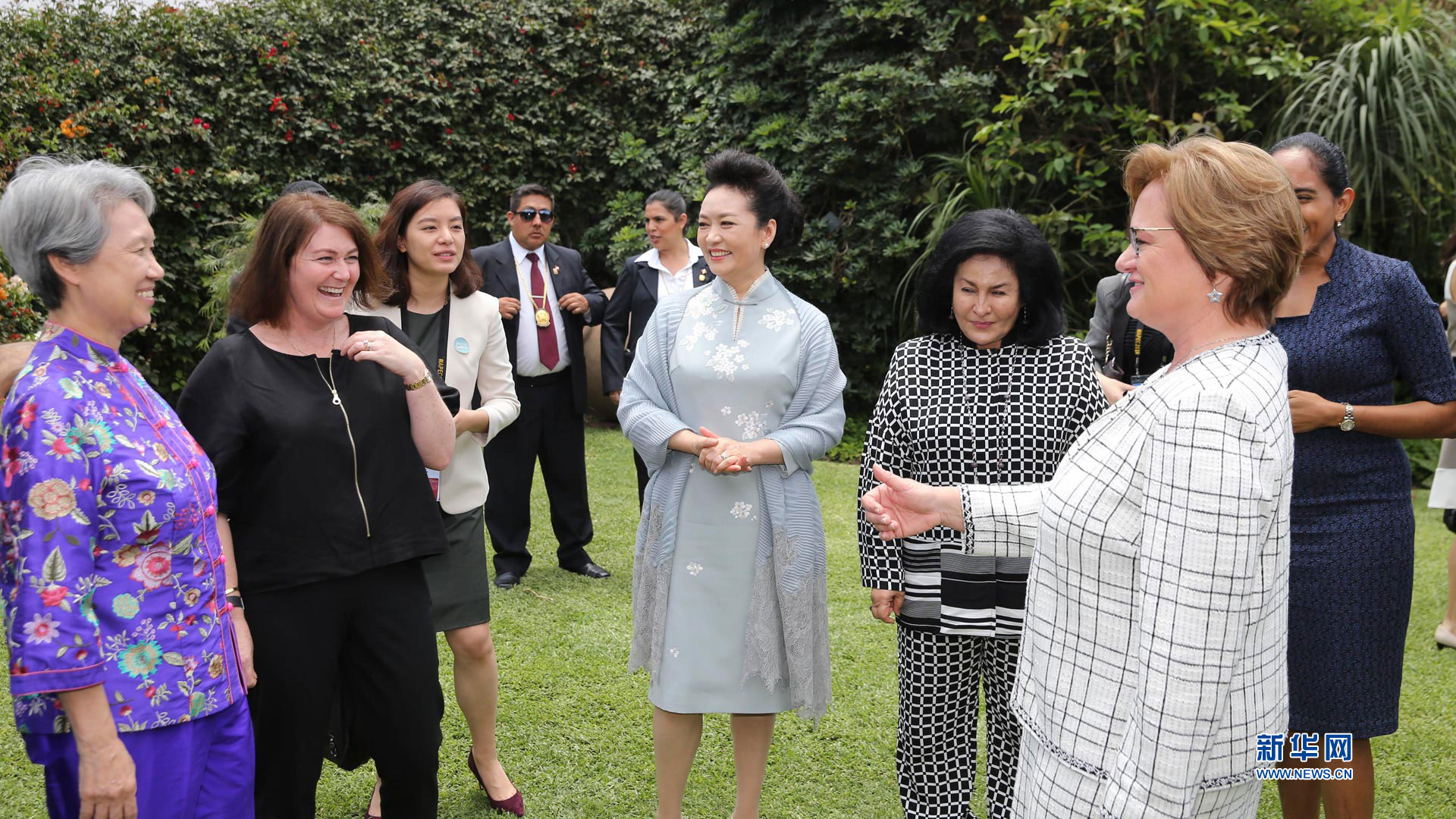 當地時間11月19日,應秘魯總統(tǒng)夫人蘭格邀請,國家主席習近平夫人彭麗媛在利馬同參加亞太經合組織第二十四次領導人非正式會議的部分經濟體領導人配偶共同參觀拉爾科博物館。新華社記者 丁林 攝2016-11-20