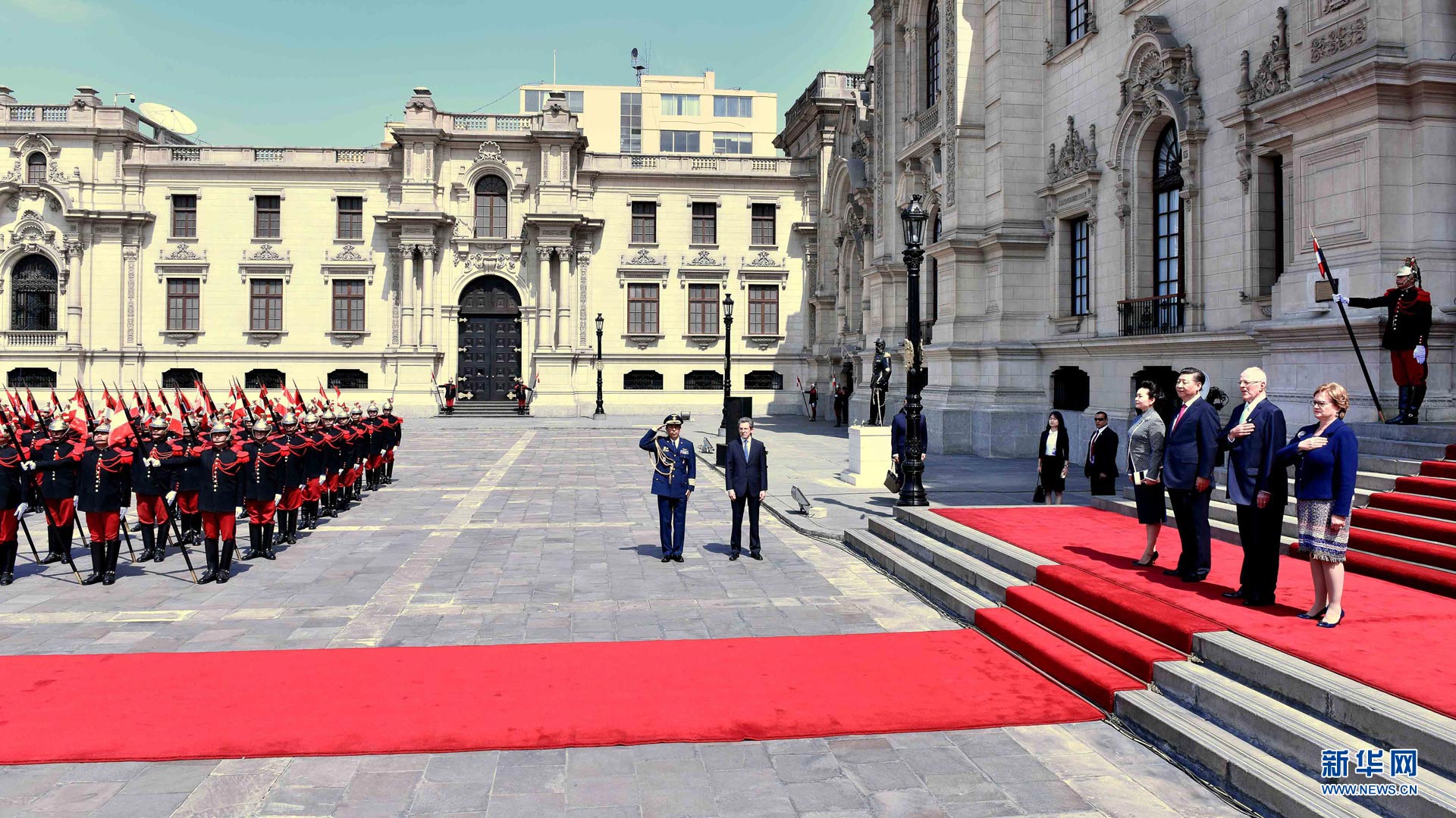11月21日,國家主席習近平在利馬同秘魯總統(tǒng)庫琴斯基舉行會談。會談前,習近平出席庫琴斯基在總統(tǒng)府前廣場舉行的歡迎儀式。新華社記者 李濤 攝2016-11-23