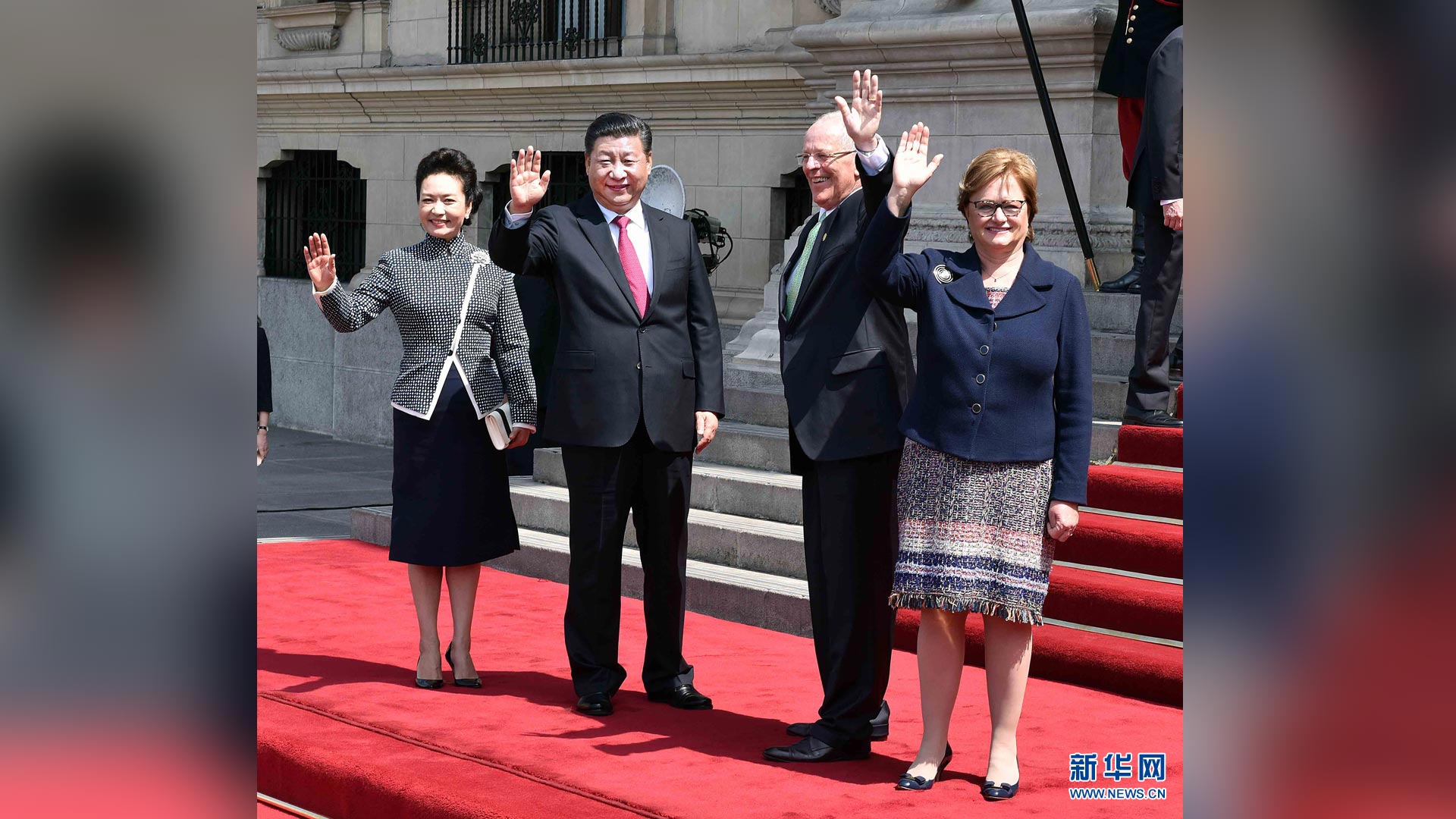 當地時間11月18日,國家主席習近平抵達利馬,出席亞太經合組織第二十四次領導人非正式會議并對秘魯共和國進行國事訪問。習近平和夫人彭麗媛受到秘魯副總統(tǒng)阿勞斯等熱情迎接。新華社記者 蘭紅光 攝2016-11-20