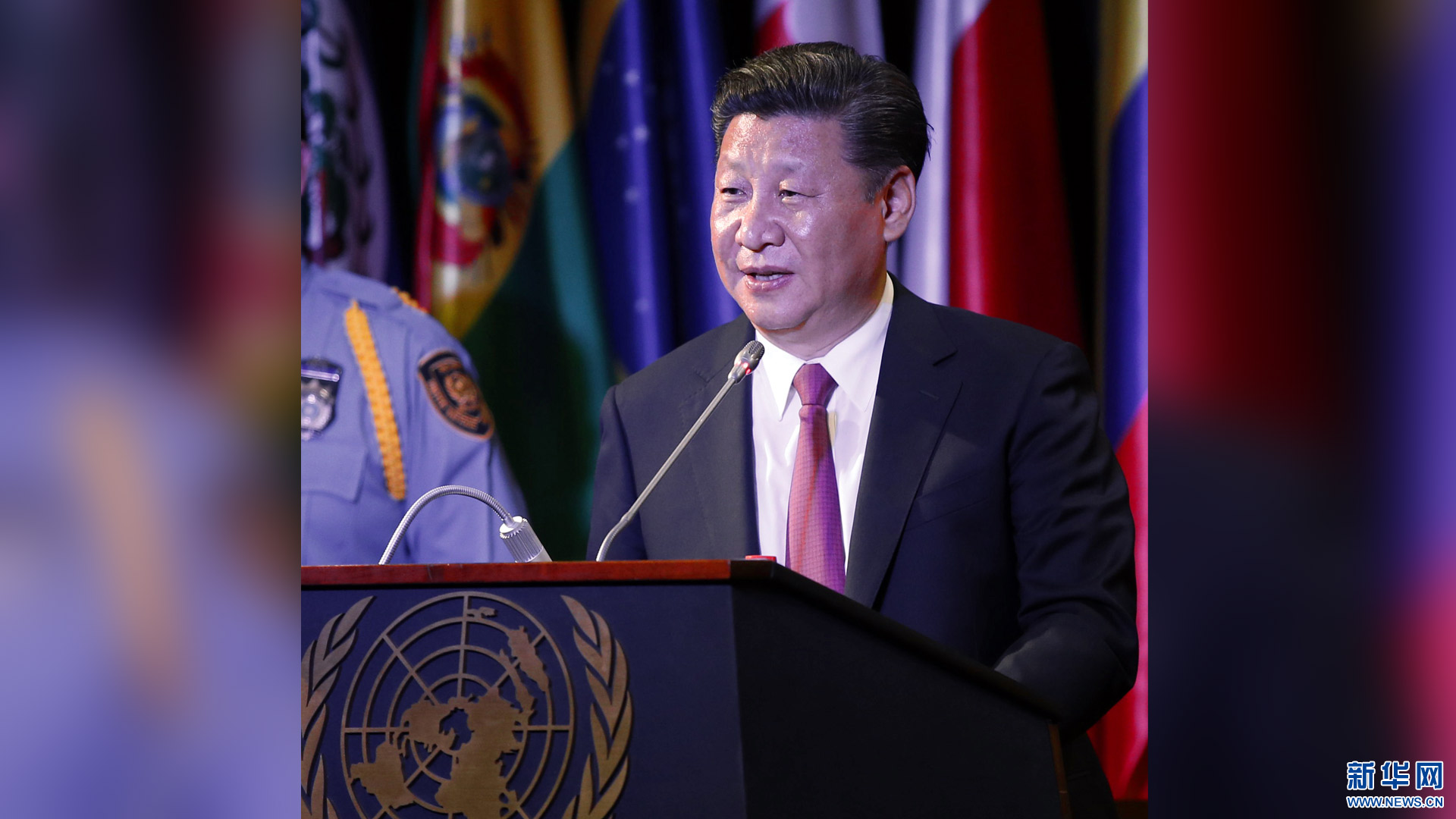 當地時間11月18日,國家主席習近平在基多同厄瓜多爾總統(tǒng)科雷亞共同出席中方援建的厄瓜多爾公共安全應急指揮中心聯合實驗室揭牌儀式,喬內醫(yī)院奠基、科卡科多-辛克雷水電站竣工發(fā)電視頻連線活動。這是習近平出席活動后致辭。新華社記者 馬占成 攝2016-11-19