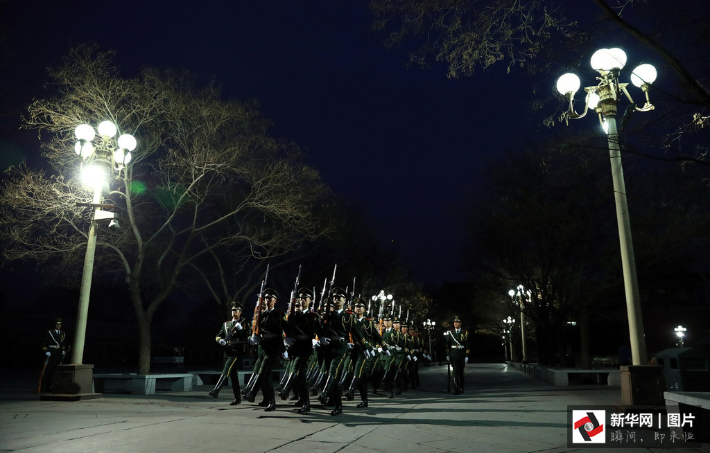 2017年3月5日,第十二屆全國人民代表大會第五次會議在人民大會堂開幕。凌晨4點(diǎn)的長安街,夜色還未褪去,位于故宮午門前一側(cè)的一座武警營區(qū)內(nèi),卻已是燈火通明。一群武警戰(zhàn)士穿起禮兵服、握緊鋼槍開始訓(xùn)練。晨曦微露,從金水橋到國旗桿下,138步、2分07秒、365天,無論雨雪風(fēng)霜、嚴(yán)寒酷暑,他們都守護(hù)著五星紅旗冉冉升起。這支部隊就是武警北京總隊天安門支隊國旗護(hù)衛(wèi)隊。