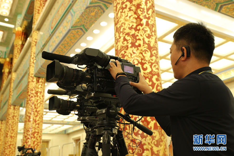 2017年10月17日下午,中國共產(chǎn)黨第十九次全國代表大會新聞發(fā)言人在人民大會堂三樓金色大廳舉行新聞發(fā)布會,并回答中外記者的提問。圖為記者在新聞發(fā)布會現(xiàn)場。新華網(wǎng) 翟子赫 攝