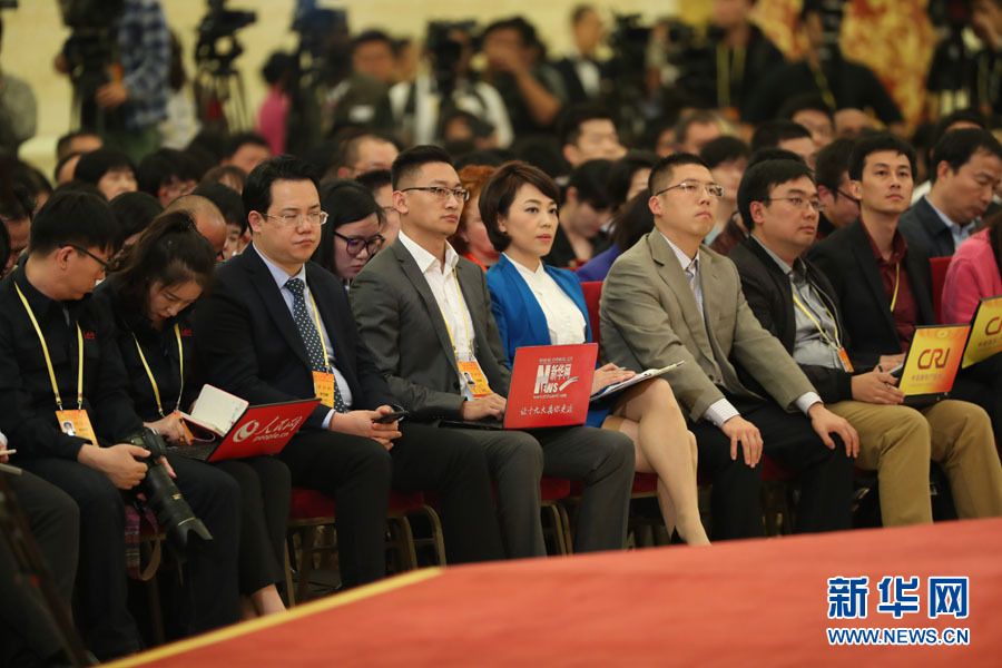 2017年10月17日下午,中國共產(chǎn)黨第十九次全國代表大會新聞發(fā)言人在人民大會堂三樓金色大廳舉行新聞發(fā)布會,并回答中外記者的提問。圖為新華網(wǎng)記者在新聞發(fā)布會現(xiàn)場。新華網(wǎng) 翟子赫 攝