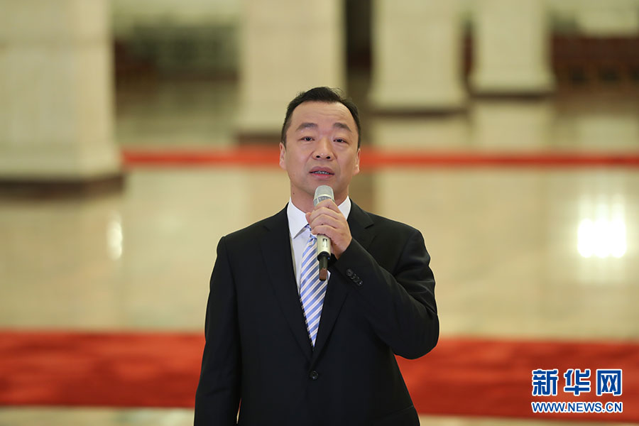 ? 10月19日,“黨代表通道”第二場(chǎng)采訪活動(dòng)在人民大會(huì)堂舉行。圖為現(xiàn)場(chǎng)主持人。新華網(wǎng) 翟子赫 攝