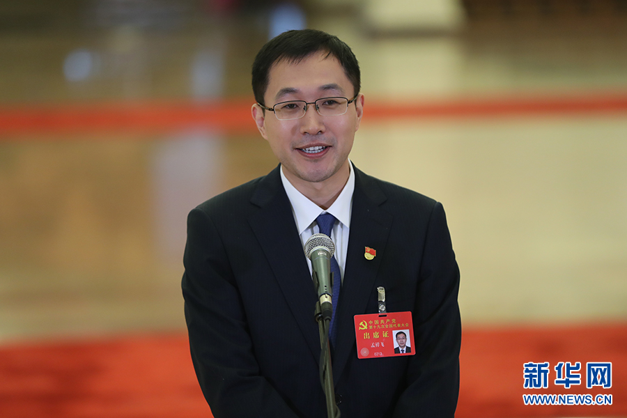 10月19日,“黨代表通道”第二場采訪活動在人民大會堂舉行。圖為孟祥飛代表接受采訪。新華網(wǎng) 翟子赫 攝