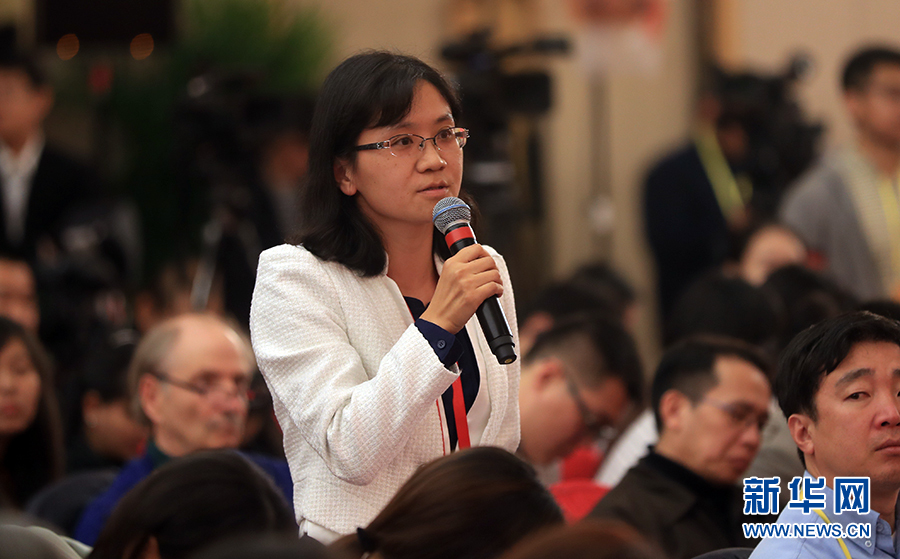 ??? 10月19日,十九大新聞中心舉行記者會(huì),邀請(qǐng)中紀(jì)委、中組部負(fù)責(zé)人介紹黨的建設(shè)和全面從嚴(yán)治黨相關(guān)情況。圖為新華社記者提問(wèn)。新華網(wǎng) 郝廣鵬攝