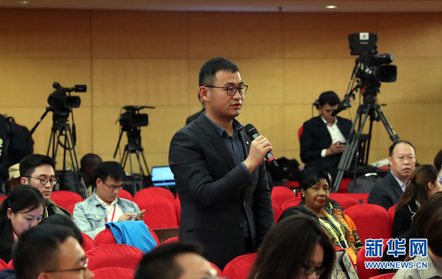 ??? 10月19日,十九大新聞中心舉辦集體采訪,邀請政法戰(zhàn)線代表談全面推進依法治國。圖為中央人民廣播電臺記者提問。新華網(wǎng) 郝廣鵬攝