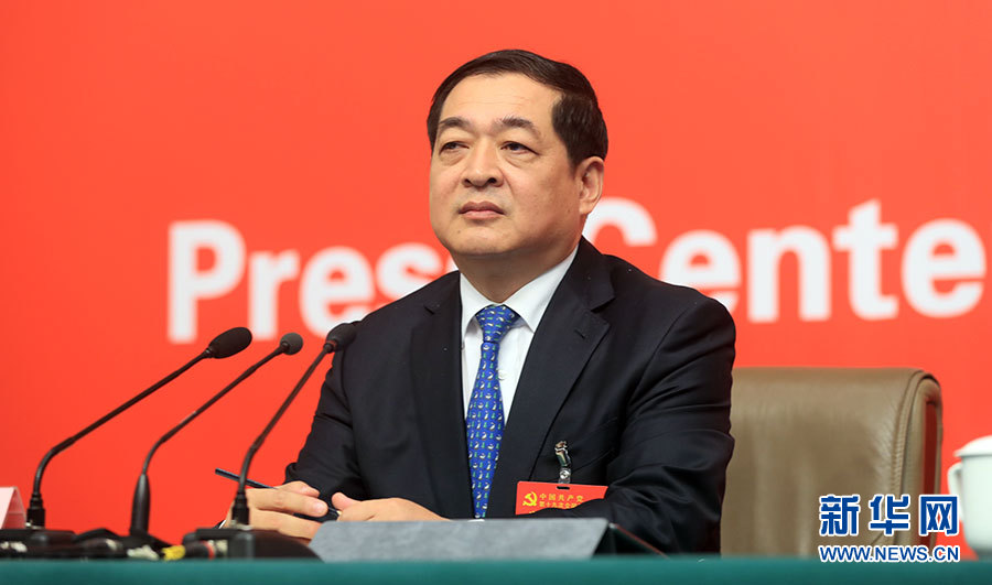??? 10月19日,十九大新聞中心舉辦集體采訪,邀請工信和通訊領(lǐng)域代表談走新型工業(yè)化道路。圖為山東省經(jīng)濟(jì)和信息化委員會黨組書記、主任錢煥濤。新華網(wǎng) 郝廣鵬攝