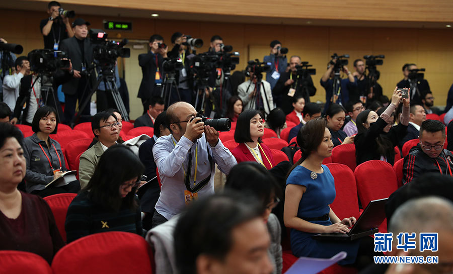 ??? 10月19日,十九大新聞中心舉辦集體采訪,邀請工信和通訊領(lǐng)域代表談走新型工業(yè)化道路。圖為采訪現(xiàn)場。新華網(wǎng) 郝廣鵬攝