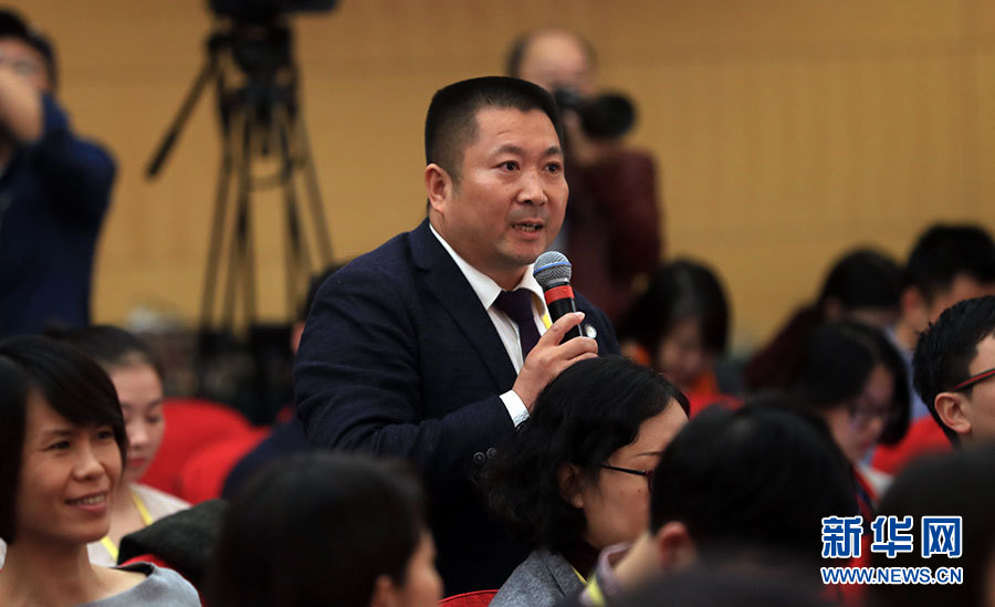 ??? 10月19日,十九大新聞中心舉辦集體采訪,邀請(qǐng)工信和通訊領(lǐng)域代表談走新型工業(yè)化道路。圖為香港經(jīng)濟(jì)導(dǎo)報(bào)記者提問(wèn)。新華網(wǎng) 郝廣鵬攝