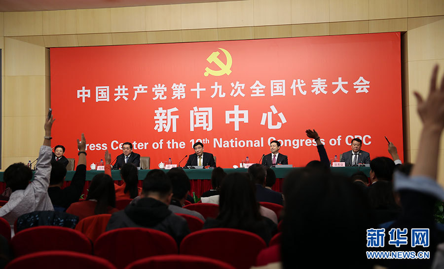 ??? 10月19日,十九大新聞中心舉辦集體采訪,邀請(qǐng)工信和通訊領(lǐng)域代表談走新型工業(yè)化道路。圖為集體采訪活動(dòng)現(xiàn)場(chǎng)。新華網(wǎng) 郝廣鵬攝