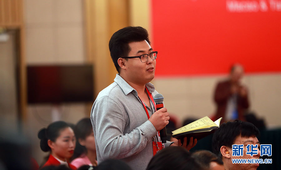 ??? 10月19日,十九大新聞中心舉辦集體采訪,邀請工信和通訊領(lǐng)域代表談走新型工業(yè)化道路。圖為中國質(zhì)量報記者提問。新華網(wǎng) 郝廣鵬攝