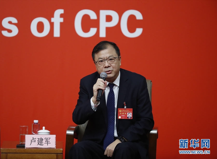 10月20日,中國共產(chǎn)黨第十九次全國代表大會新聞中心舉行主題為“實施創(chuàng)新驅(qū)動發(fā)展戰(zhàn)略”的集體采訪活動??萍疾奎h組書記、副部長王志剛,中國科學(xué)院遺傳與發(fā)育生物學(xué)研究所研究員、分子系統(tǒng)生物學(xué)研究中心主任王秀杰,浪潮集團首席科學(xué)家、中國工程院院士王恩東,陜西省委科技工委書記、科技廳廳長盧建軍,南昌大學(xué)副校長江風益接受采訪。這是盧建軍在回答記者提問。新華社記者 沈伯韓 攝
