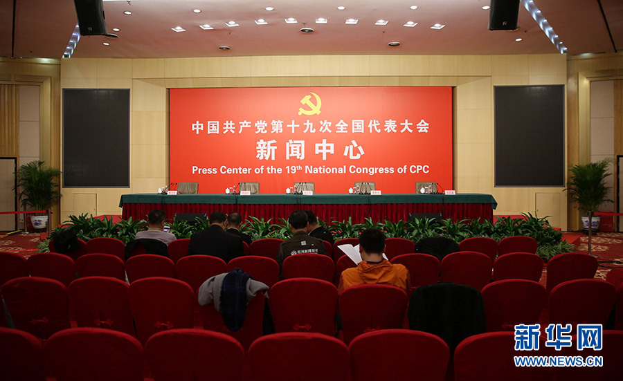 ??? 10月20日,十九大新聞中心舉行記者會,邀請中宣部、中央文明辦、文化部、新聞出版廣電總局相關(guān)負(fù)責(zé)人介紹加強(qiáng)思想道德和文化建設(shè)情況,并回答記者提問。圖為記者會現(xiàn)場。新華網(wǎng) 郝廣鵬 攝