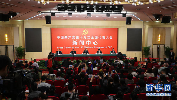 10月20日,十九大新聞中心舉行記者會(huì),邀請(qǐng)中宣部、中央文明辦、文化部、新聞出版廣電總局相關(guān)負(fù)責(zé)人介紹加強(qiáng)思想道德和文化建設(shè)情況,并回答記者提問。圖為記者會(huì)現(xiàn)場(chǎng)。新華網(wǎng) 郝廣鵬 攝