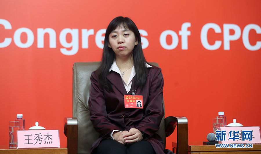 ??? 10月20日,十九大新聞中心舉辦集體采訪活動,主題為“實施創(chuàng)新驅動發(fā)展戰(zhàn)略”。圖為中國科學院遺傳與發(fā)育生物學研究所研究員、分子系統(tǒng)生物學研究中心主任王秀杰。新華網(wǎng) 郝廣鵬攝