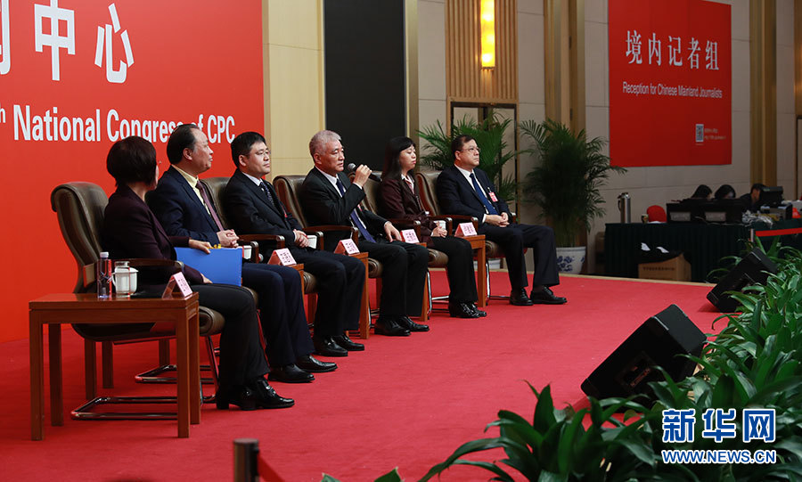 ??? 10月20日,十九大新聞中心舉辦集體采訪活動(dòng),主題為“實(shí)施創(chuàng)新驅(qū)動(dòng)發(fā)展戰(zhàn)略”。圖為集體采訪活動(dòng)現(xiàn)場(chǎng)。新華網(wǎng) 郝廣鵬攝