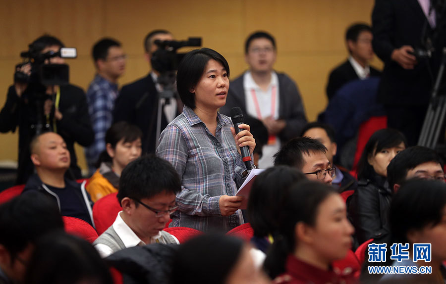 ??? 10月20日,十九大新聞中心舉辦集體采訪活動,主題為“實施創(chuàng)新驅動發(fā)展戰(zhàn)略”。圖為中國海洋報記者提問。新華網 郝廣鵬攝