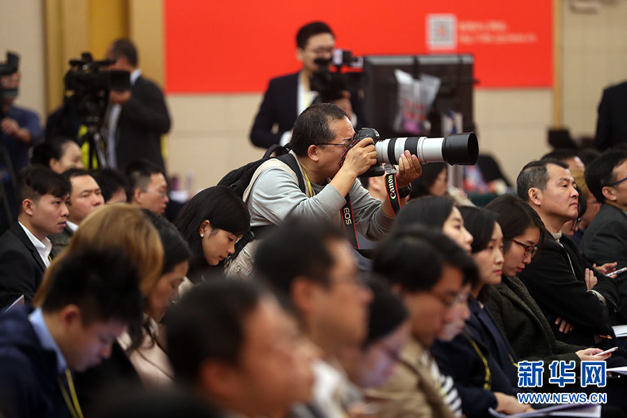 10月21日,十九大新聞中心舉辦記者招待會(huì),邀請(qǐng)中共中央統(tǒng)戰(zhàn)部常務(wù)副部長(zhǎng)張裔炯、副部長(zhǎng)冉萬祥,中共中央對(duì)外聯(lián)絡(luò)部副部長(zhǎng)郭業(yè)洲介紹黨的統(tǒng)一戰(zhàn)線工作和黨的對(duì)外交往情況,并回答記者提問。圖為現(xiàn)場(chǎng)記者。新華網(wǎng) 郝廣鵬攝