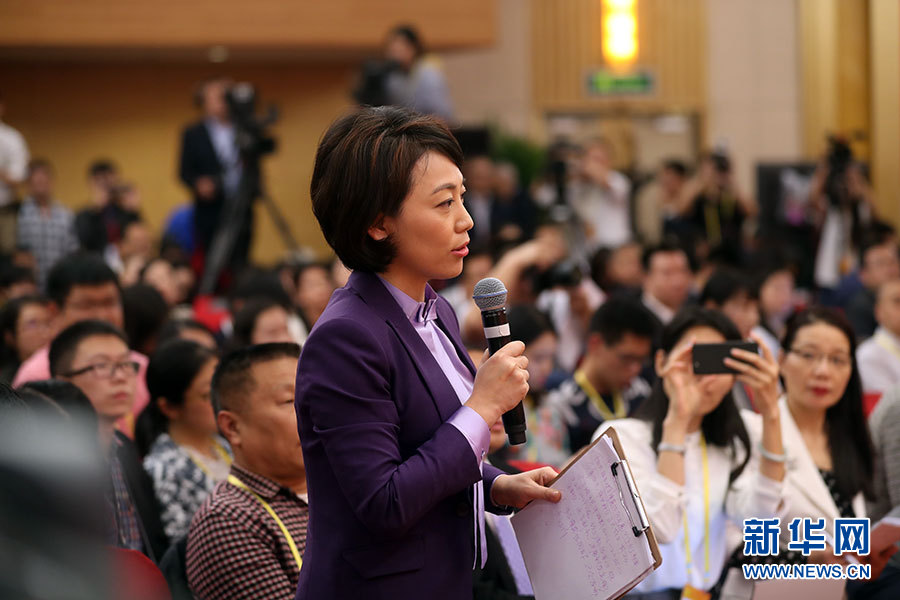 10月21日,十九大新聞中心舉辦記者招待會(huì),邀請(qǐng)國家發(fā)展改革委黨組書記、主任何立峰,副主任張勇,副主任寧吉喆介紹以新發(fā)展理念為引領(lǐng),推進(jìn)中國經(jīng)濟(jì)平穩(wěn)健康可持續(xù)發(fā)展有關(guān)情況,并回答記者提問。圖為中央電視臺(tái)、中國國際電視臺(tái)記者提問。新華網(wǎng) 郝廣鵬攝