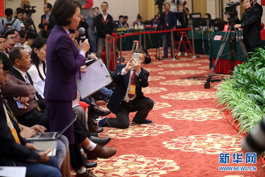 ??? 10月21日,十九大新聞中心舉辦記者招待會,邀請國家發(fā)展改革委黨組書記、主任何立峰,副主任張勇,副主任寧吉喆介紹以新發(fā)展理念為引領(lǐng),推進(jìn)中國經(jīng)濟(jì)平穩(wěn)健康可持續(xù)發(fā)展有關(guān)情況,并回答記者提問。圖為現(xiàn)場記者。新華網(wǎng) 郝廣鵬攝