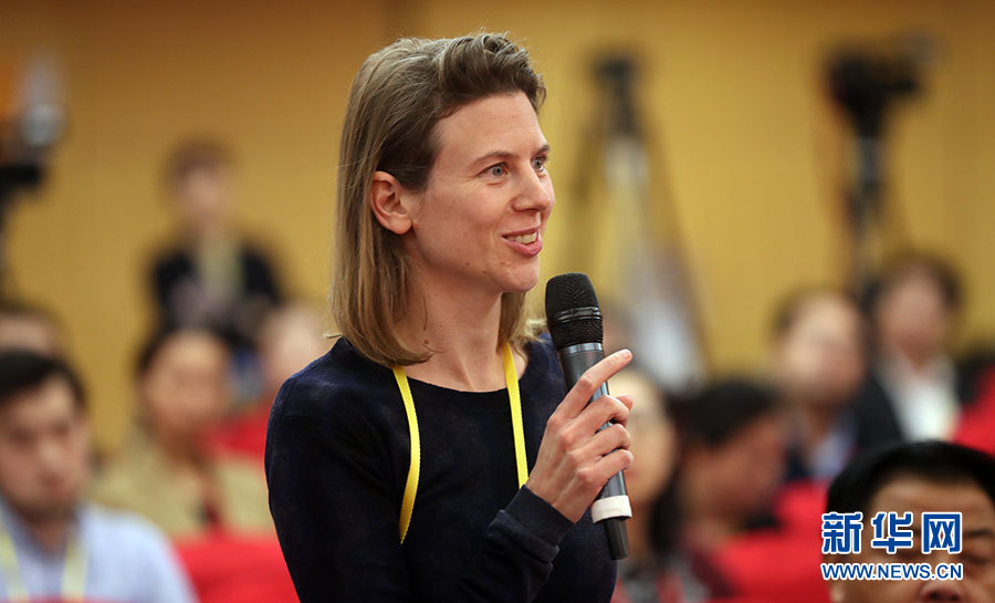 10月21日,十九大新聞中心舉辦集體采訪活動(dòng),主題為“農(nóng)業(yè)科技創(chuàng)新”。圖為路透社記者提問(wèn)。新華網(wǎng) 郝廣鵬攝