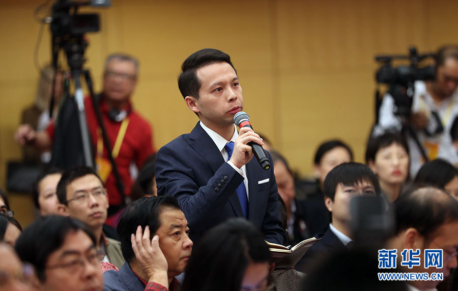 10月22日,十九大新聞中心舉辦記者招待會(huì),邀請(qǐng)教育部黨組書記、部長(zhǎng)陳寶生,民政部黨組書記、部長(zhǎng)黃樹賢,人力資源社會(huì)保障部黨組書記、部長(zhǎng)尹蔚民,住房城鄉(xiāng)建設(shè)部黨組書記、部長(zhǎng)王蒙徽,國(guó)家衛(wèi)生計(jì)生委黨組書記、主任李斌介紹滿足人民新期待,保障改善民生有關(guān)情況,并回答記者提問。圖為中國(guó)日?qǐng)?bào)記者提問。新華網(wǎng) 郝廣鵬攝