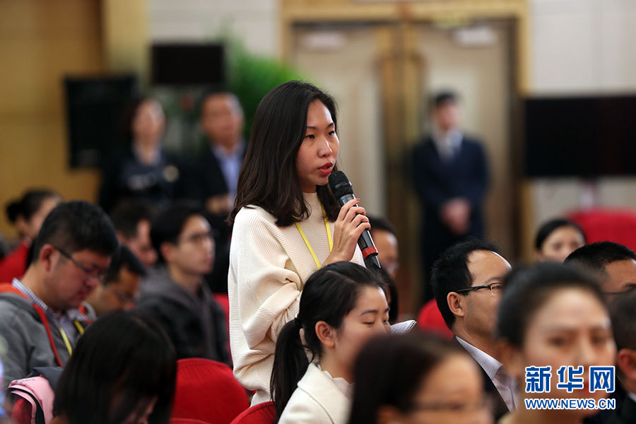 10月22日,十九大新聞中心在梅地亞中心二層新聞發(fā)布廳舉辦集體采訪活動,邀請教育領(lǐng)域代表談“教育綜合改革”。圖為中國新聞社、中國新聞網(wǎng)記者提問。新華網(wǎng) 郝廣鵬攝