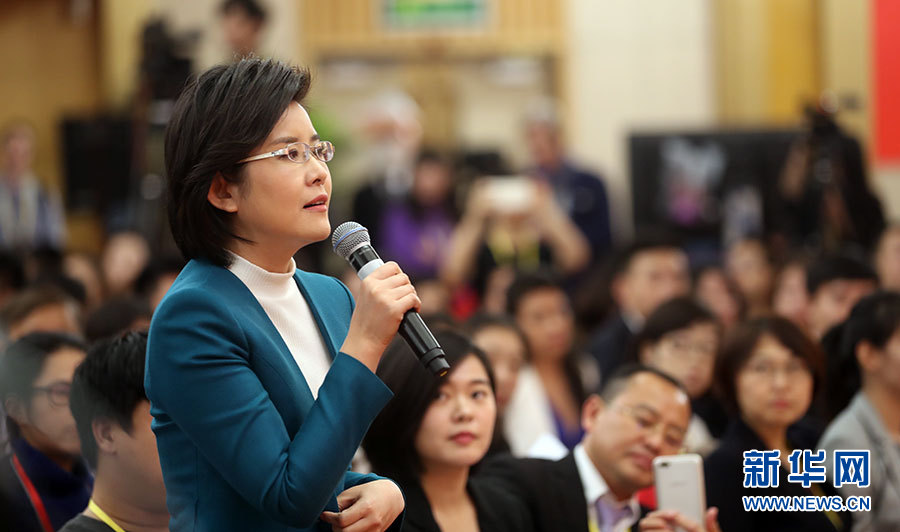 10月23日,十九大新聞中心舉辦記者招待會(huì),邀請(qǐng)中央財(cái)經(jīng)領(lǐng)導(dǎo)小組辦公室副主任楊偉民,環(huán)境保護(hù)部黨組書記、部長(zhǎng)李干杰介紹踐行綠色發(fā)展理念,建設(shè)美麗中國有關(guān)情況,并回答記者提問。圖為中央電視臺(tái)記者提問。新華網(wǎng) 郝廣鵬攝