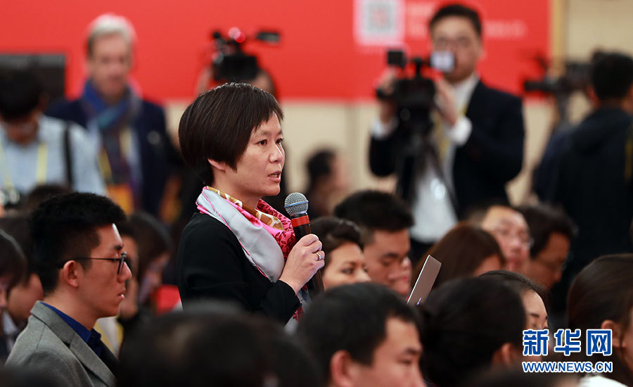 10月23日,十九大新聞中心舉辦記者招待會,邀請中央財經(jīng)領(lǐng)導(dǎo)小組辦公室副主任楊偉民,環(huán)境保護部黨組書記、部長李干杰介紹踐行綠色發(fā)展理念,建設(shè)美麗中國有關(guān)情況,并回答記者提問。圖為中國青年報記者提問。新華網(wǎng) 郝廣鵬攝
