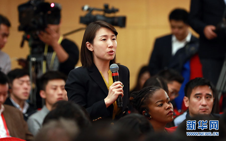 10月23日,十九大新聞中心舉辦記者招待會,邀請中央財經(jīng)領(lǐng)導(dǎo)小組辦公室副主任楊偉民,環(huán)境保護部黨組書記、部長李干杰介紹踐行綠色發(fā)展理念,建設(shè)美麗中國有關(guān)情況,并回答記者提問。圖為鳳凰衛(wèi)視記者提問。新華網(wǎng) 郝廣鵬攝